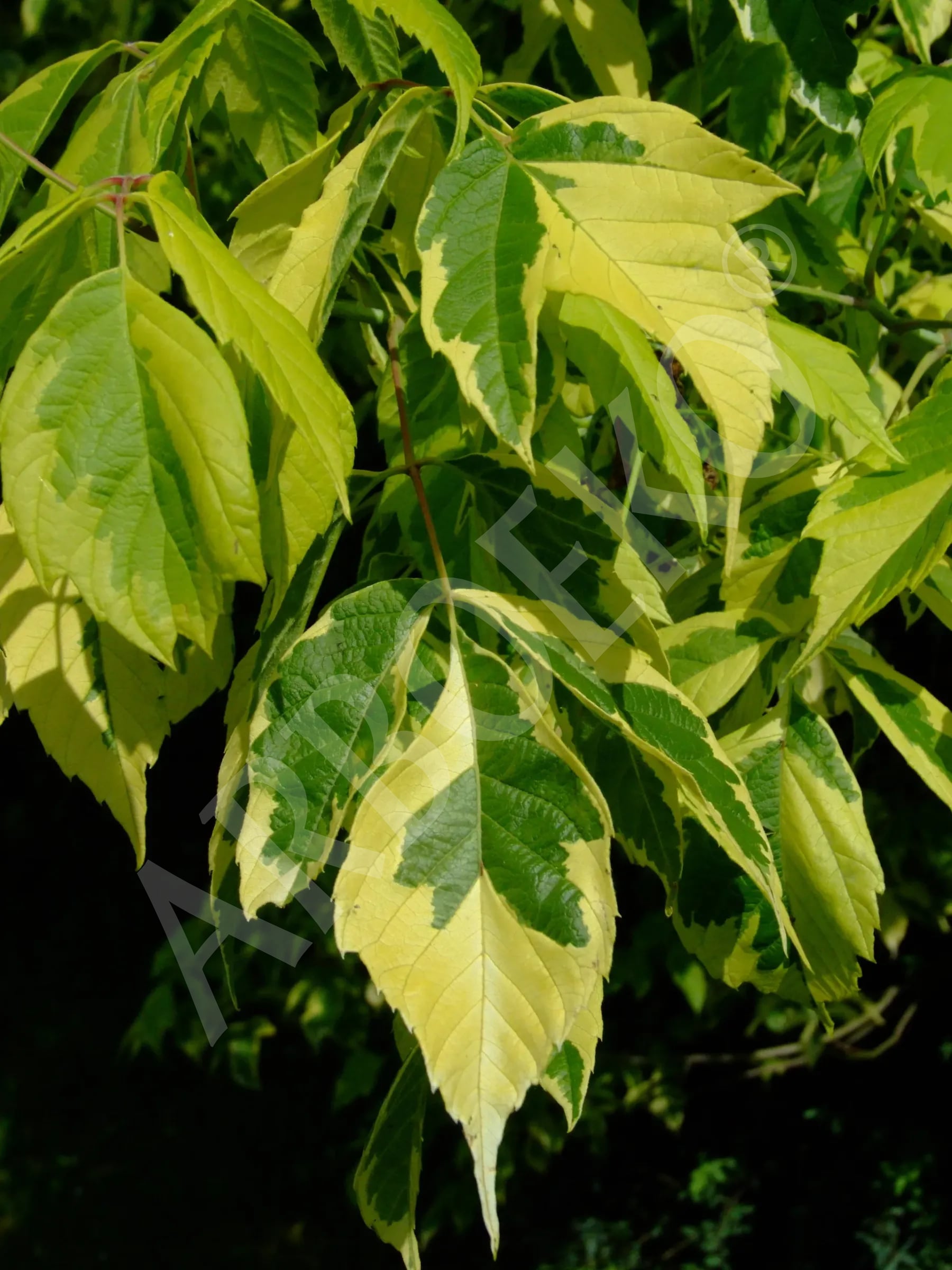 Kultivar se široce vejčitou korunou. Lichozpeřené listy jsou tmavě zelené, zlatožlutě panašované. Pokud se vyskytnou bujněji rostoucí větve se zelenými listy, je nutné je odstranit. Kvete ještě před rašením listů. Na suchém plně osluněném stanovišti může během letního období dojít k popálení panašovaných částí listů. Je nenáročný, roste i v zásaditých půdách. Plody jsou jedovaté pro koně, při požití i pro člověka.