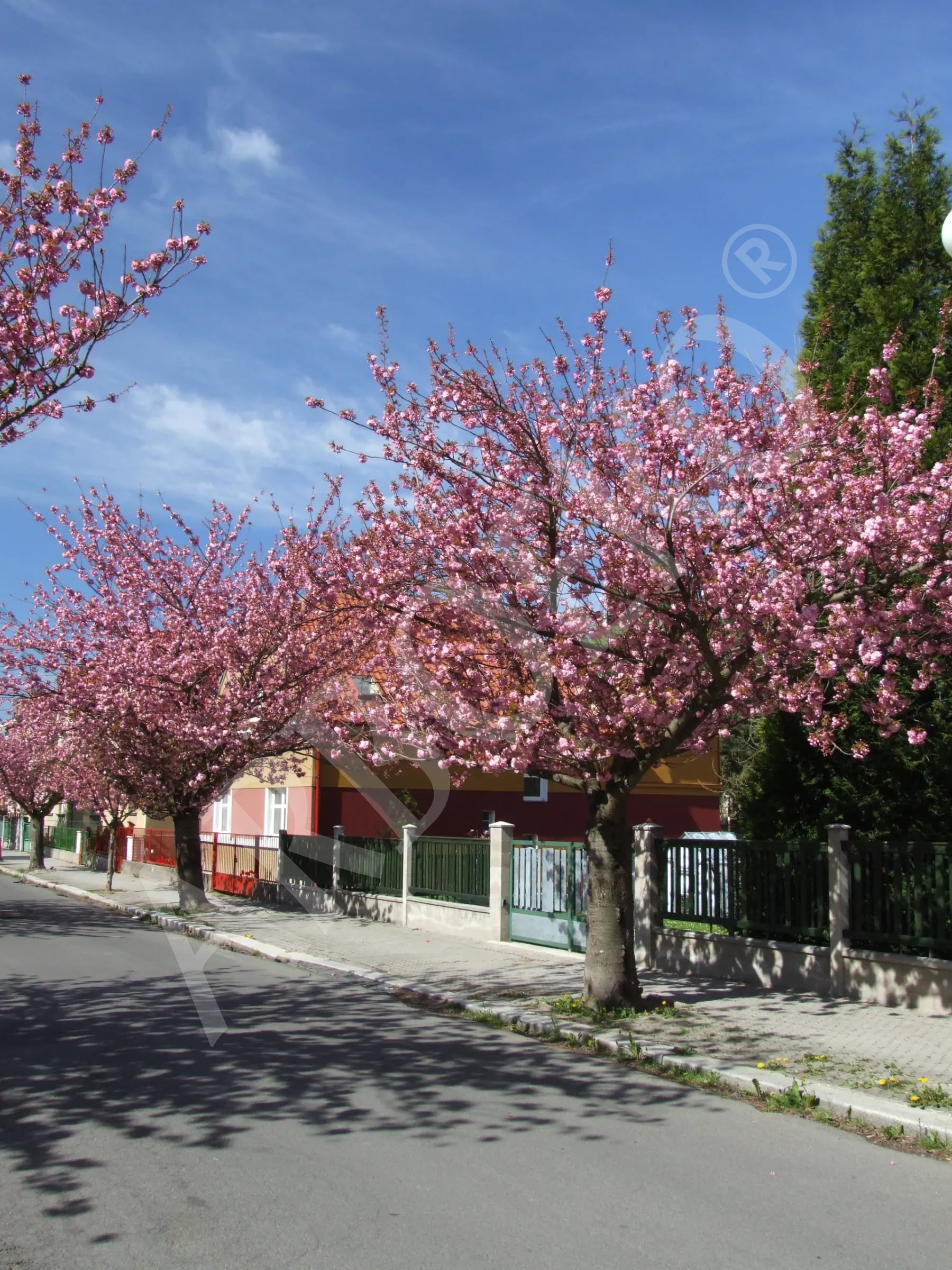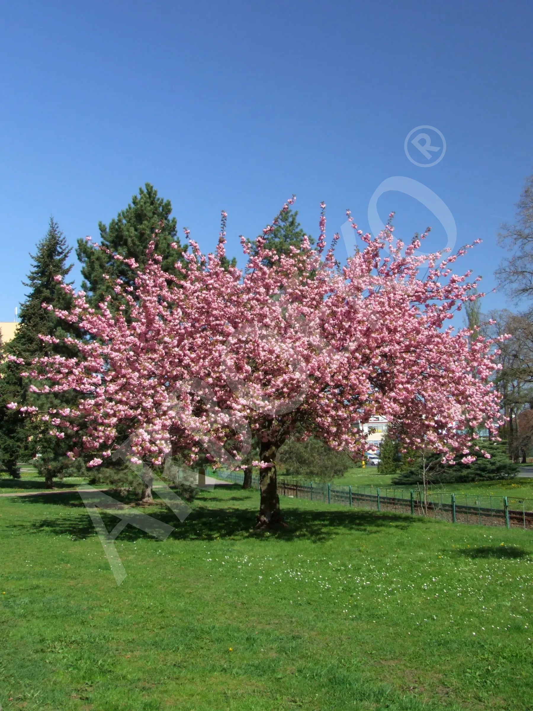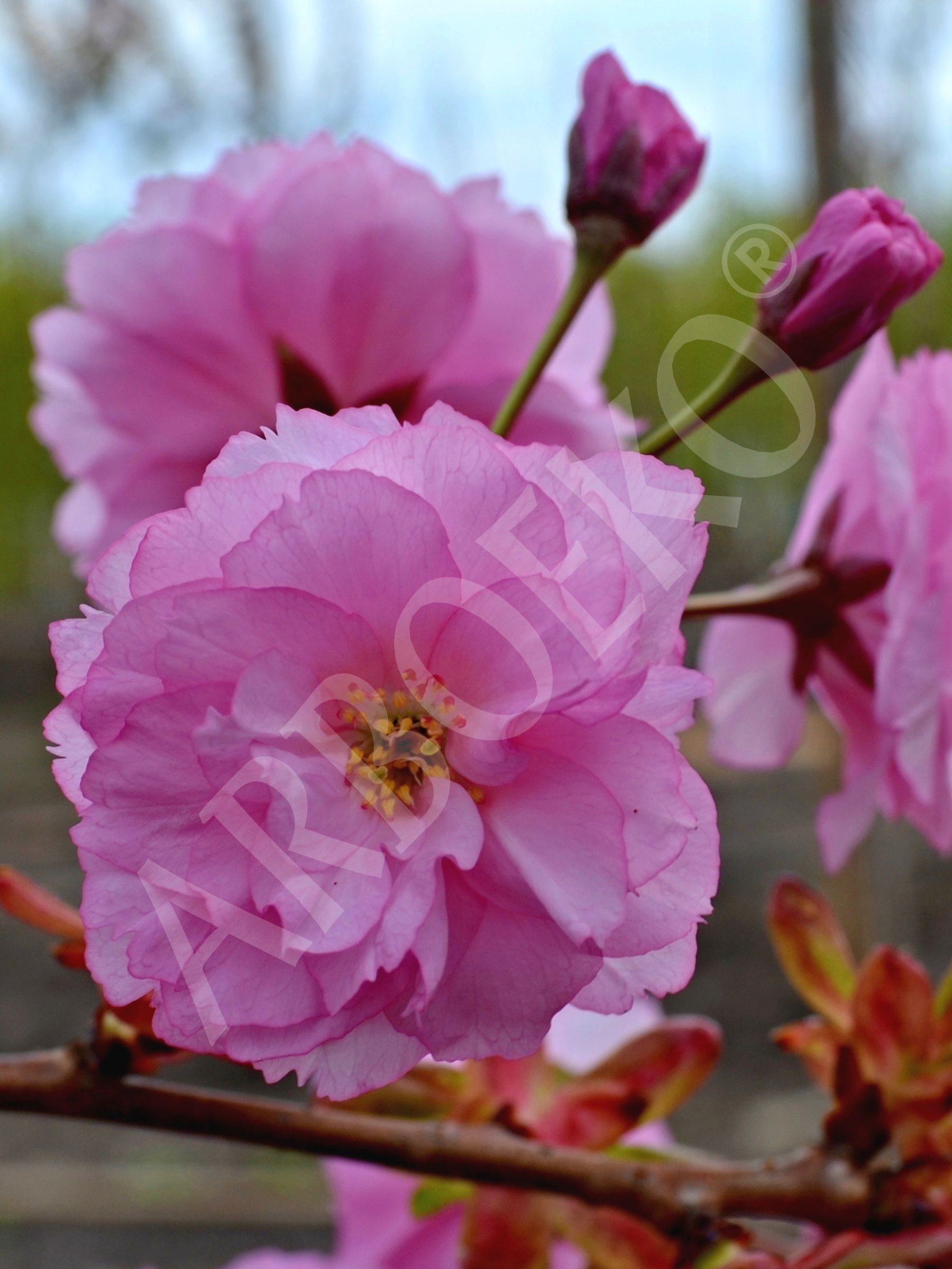 Okrasná třešeň s typickou široce trychtýřovitou korunou. Ve stáří se větve mírně sklánějí. Je jedinečný díky velkému množství plných květů růžové barvy. Listy jsou na jaře bronzově zbarvené, během léta tmavě zelené. Na podzim se barva listů mění na žlutou a oranžovou. Vhodné je plně osluněné nezamokřené stanoviště. Vyšší obsah vápníku v půdě přispívá také k dobrému růstu.