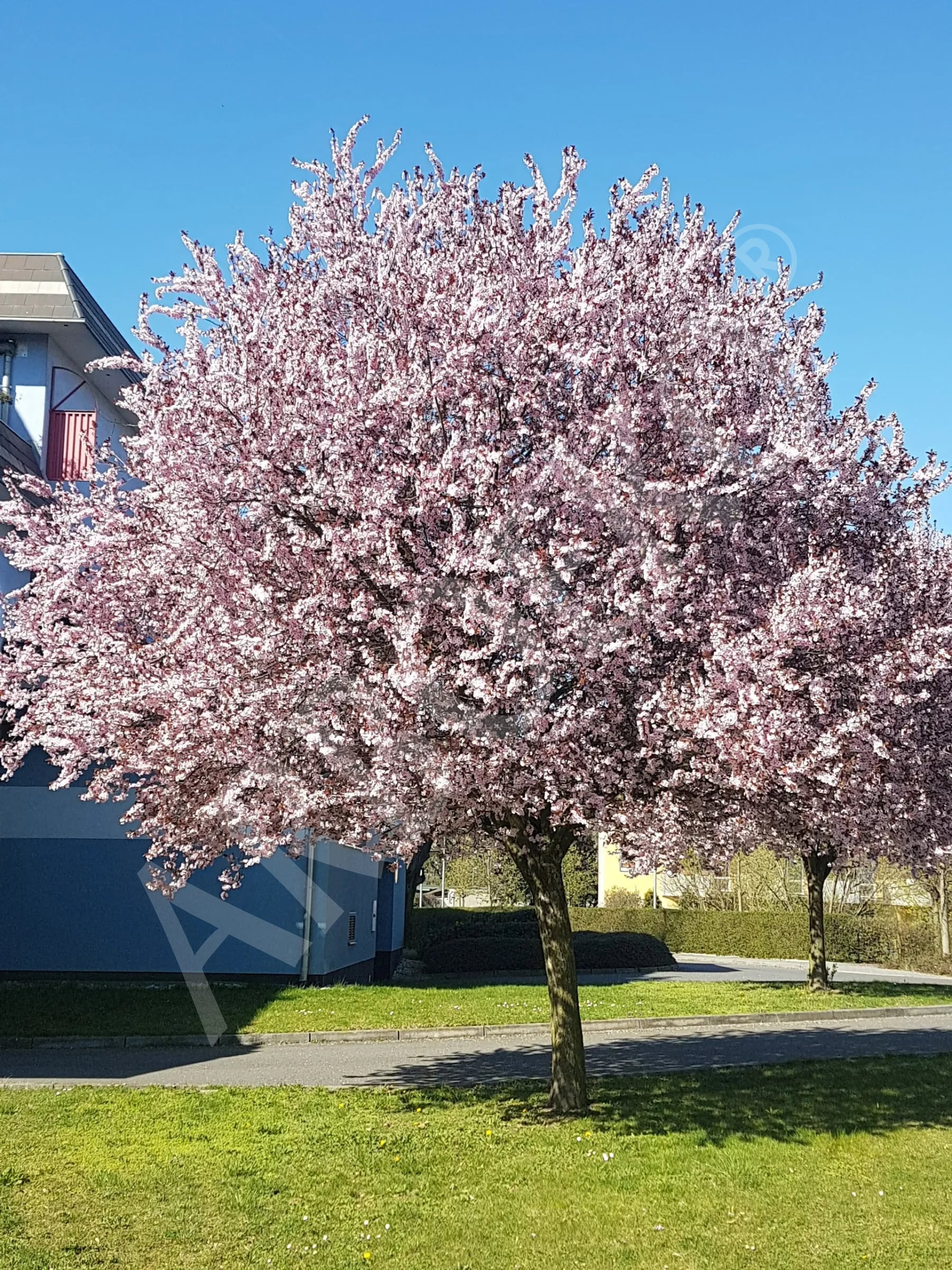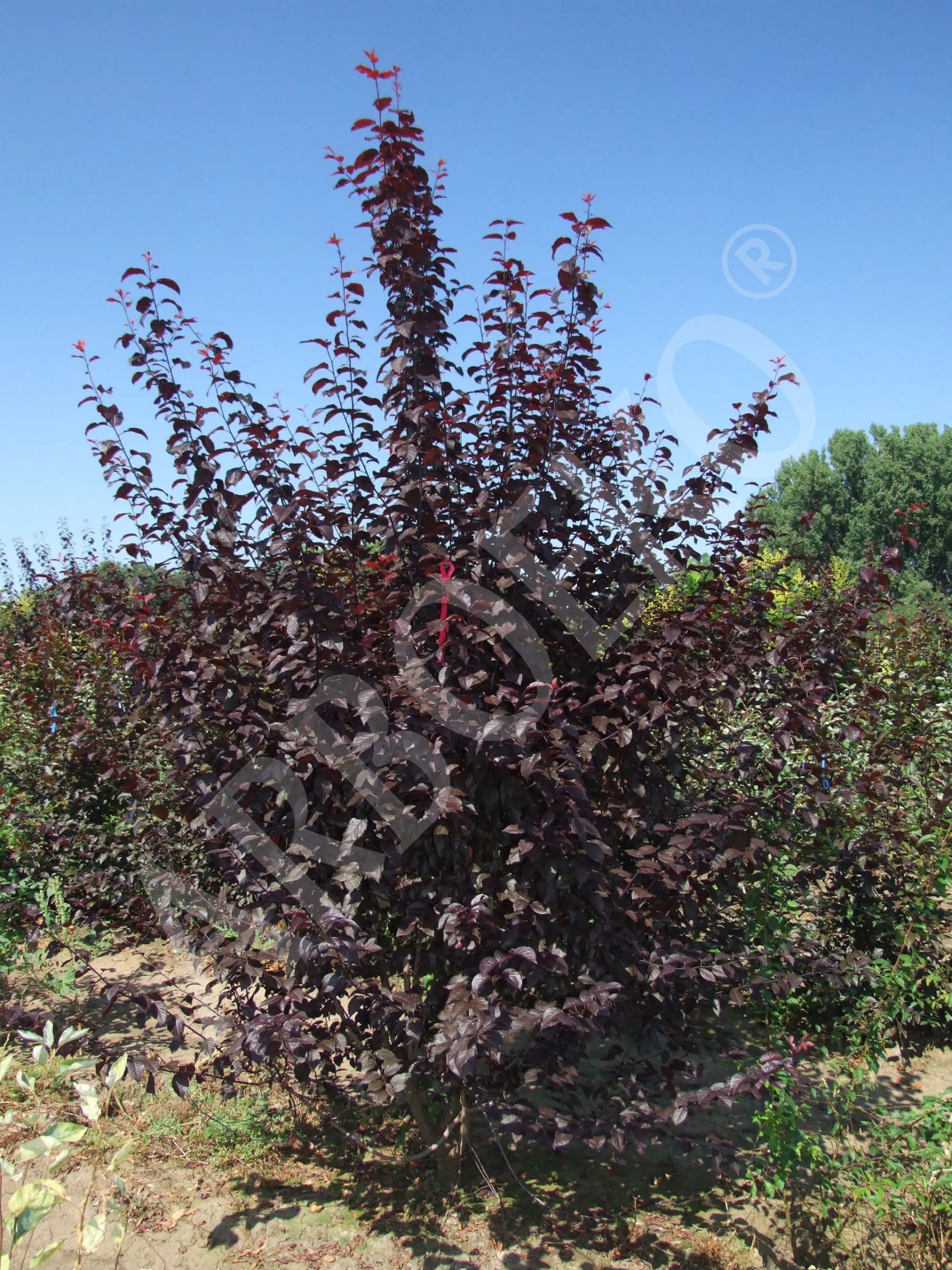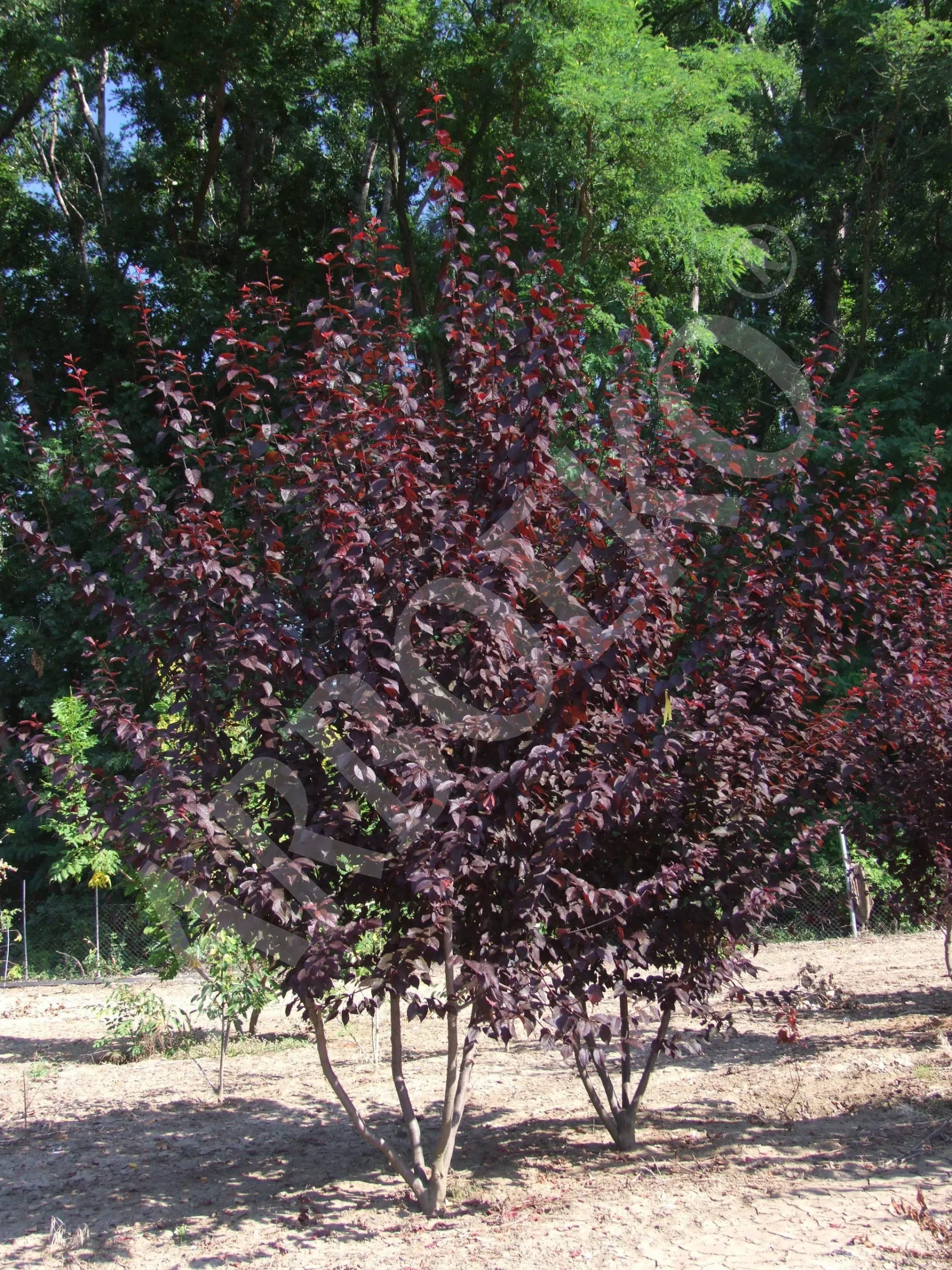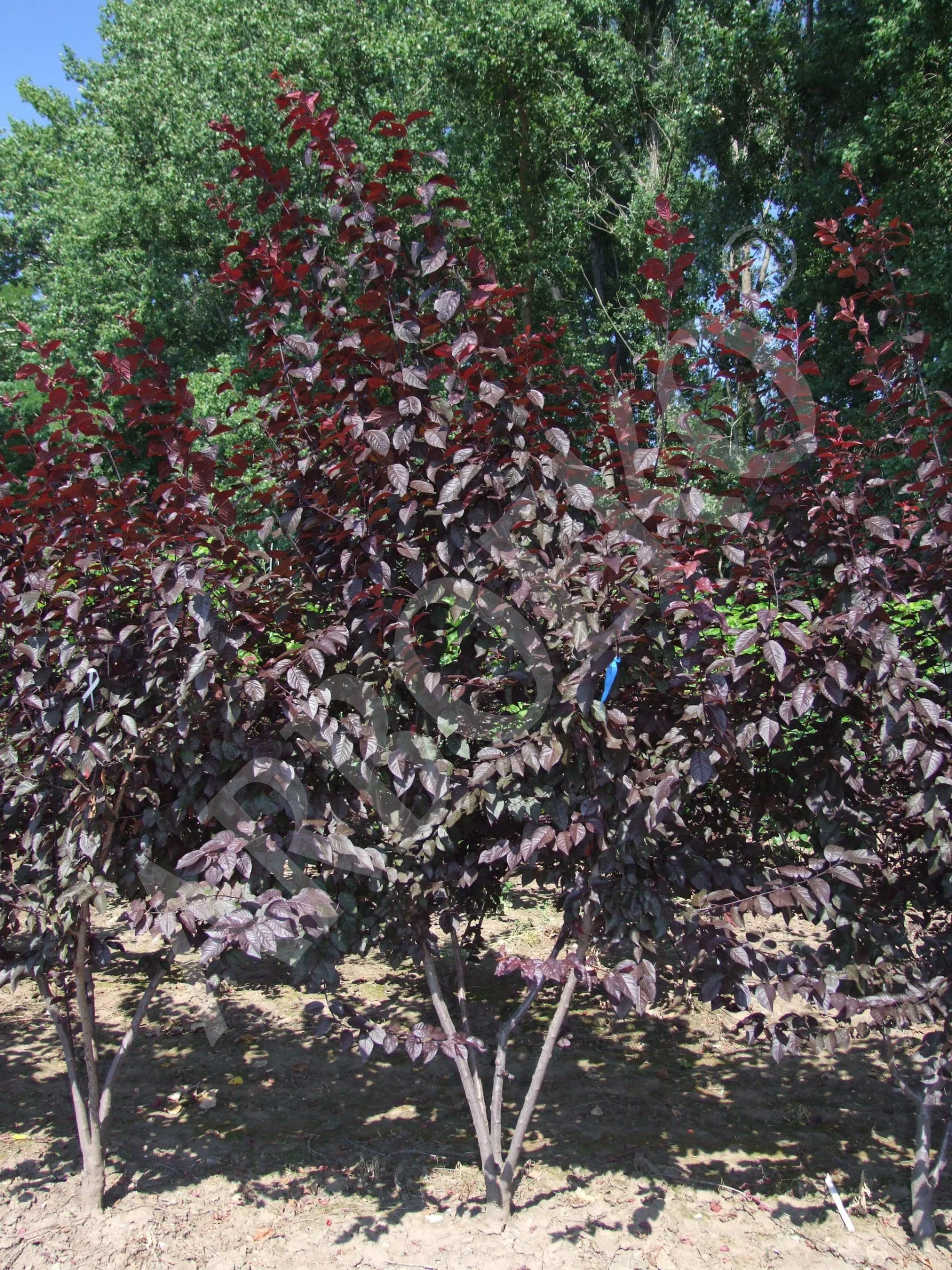 Liście przez cały okres wegetacji mają wyraźną, czarnoczerwoną barwę. Przed pojawieniem się liści obficie zakwita jasnoróżowymi kwiatami. Korona stożkowata lub kulista jest stosunkowo gęsto ugałęziona. U okazów starszych gałęzie lekko opadają. Do sadzenia właściwa jest gleba odpowiednio wilgotna, wapienna, a także odpowiednia ilość światła. Można ją zasadzić także na suchszym stanowisku, jednak wtedy, podczas dłuższej suszy, może utracić część liści.