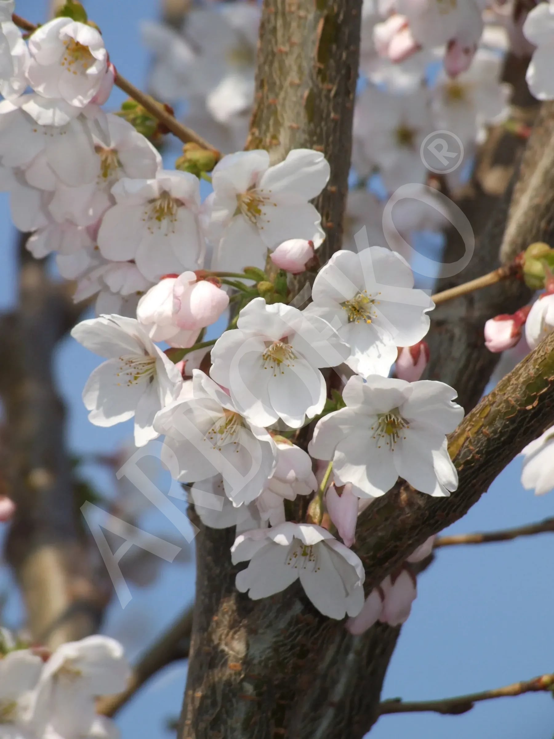 Bujnie rosnąca wiśnia ozdobna, o lejkowatej koronie, która w późniejszym okresie szeroko się rozpościera, a jej gałązki lekko opadają. Kwitnie przed pojawieniem się liści dużą ilością białych kwiatów. Jasnozielone liście jesienią przybierają atrakcyjną barwę od żółtopomarańczowej po czerwonawą. Wymaga nasłonecznionego stanowiska oraz gleby przepuszczalnej, niepodmokłej, o odpowiedniej ilości wapnia.